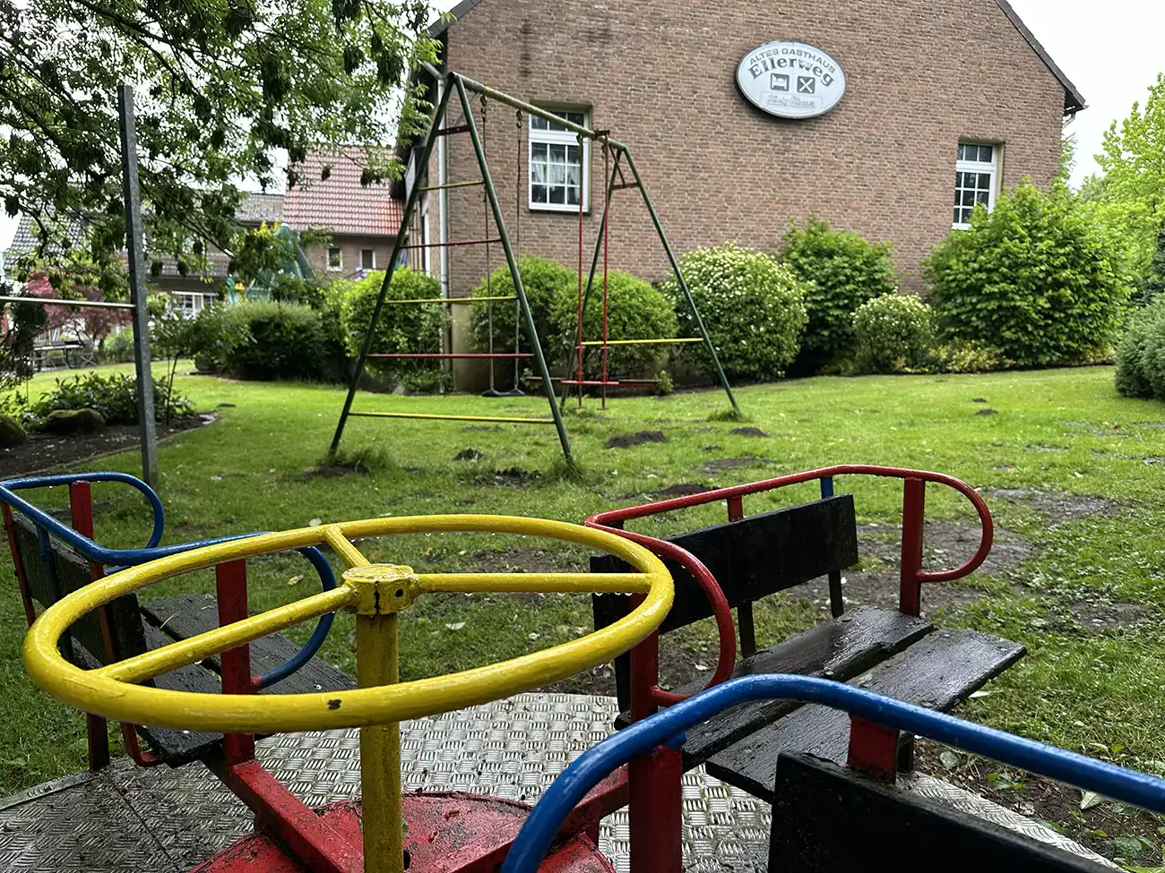 Während Sie im Biergarten vereilen, können Ihre Kinder auf dem Spielplatz toben