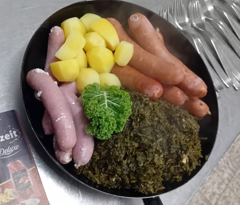 Deftig, regional und saisonal: Unser Grünkohl wird nach Hausrezept serviert – perfekt für kalte Tage.